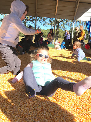 Luckily, once the sun came out we warmed up and had fun jumping in corn kernels...